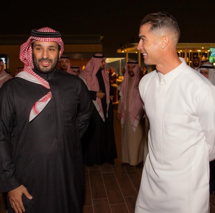 直播吧2月23日讯 今天,C罗出席了沙特开国系念日庆祝典礼,他在社媒上共享了他与沙特王储的合影。