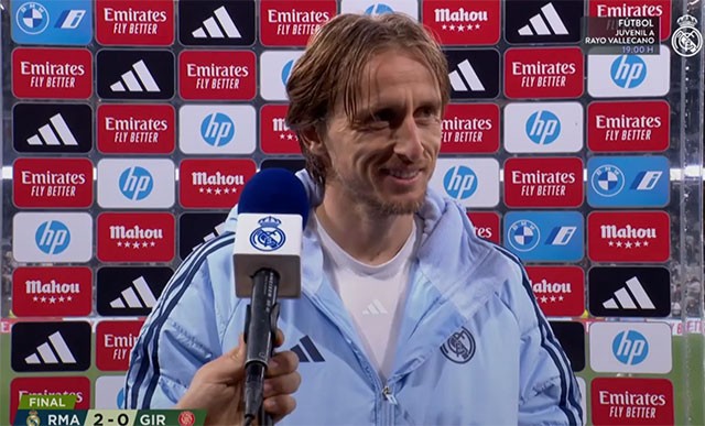 在皇马主场与赫罗纳的比赛中,莫德里奇以一记天下波为球队败坏僵局,匡助星河军舰最终2-0得手并在积分榜追平巴萨体育录像/图片,赛后他接管了俱乐部官网的采访。